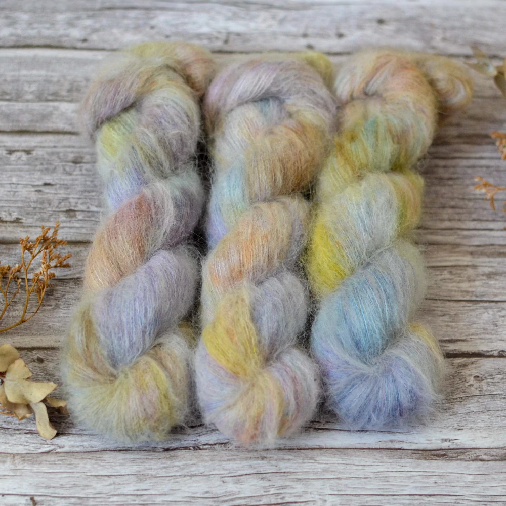 Suri Silk je vhodnější pro citlivější jedince, kt0eré mohér kouše, ale chtěí si uplést projekt s moderním chloupkem a zapudrovaným, mlžným efektem.